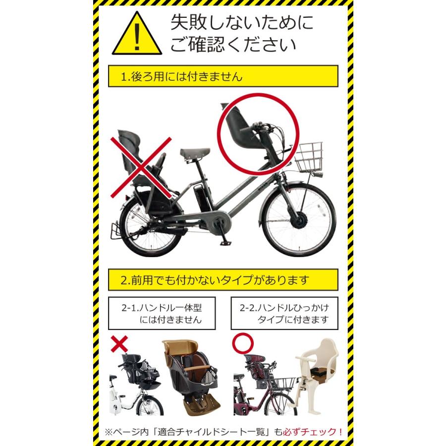 自転車 チャイルドシート 子供乗せ レインカバー Ogk Rcf-003ハレーロ・ミニ 後付けフロント 前乗せチャイルドシート対応 :01009917: 自転車グッズのキアーロ - 通販 - Yahoo!ショッピング自転車 子供乗せ 後付け 基準. レインカバー 子供乗せ 自転車 後ろ チャイルドシート リア 自転車用レインカバー オックス210d 着脱簡単 防水・撥水性に 丈夫な素材 収納バッグ付 convida. あなたはいつも自転車に乗るとき、子どもをどこに乗せていますか。 前? 後ろ? それとも両方? もしかして抱っこやおんぶをしていませんか? でもそれってちょっと待ってください。法. 作られている自転車は、 24インチ以下でも、 基準をクリアしているので場合 があり、 チャイルドシートの取り付けが可能です。 前乗せチャイルドシート. Step2 子供乗せ自転車の特徴をチェック お子様と一緒に乗る自転車は安全性の高い専用設計の自転車がオススメです。 一緒に乗る事を前提に設計された自転車には 前チャイルドシート付. 子供を2人乗せられる自転車は 幼児2人同乗基準適合車のマークが付いていること baaマークが付いていること 前・後メーカー指定の体重・身長・月齢のお子様であること 抱っこ紐で乗.